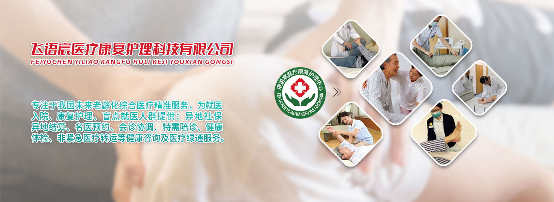 深圳市飛語宸醫(yī)療康復(fù)護(hù)理科技有限公司,是一家專注于健康產(chǎn)業(yè)領(lǐng)域中具有卓越影響力的創(chuàng)新型服務(wù)企業(yè)。公司致力于為社會提供全方位、高品質(zhì)的醫(yī)療、康復(fù)、護(hù)理及人工智能綠通就醫(yī)服務(wù)。憑借前沿最先進(jìn)的醫(yī)療技術(shù)信息和專業(yè)的團(tuán)隊(duì),注重服務(wù)深耕細(xì)作,為解決健康綠通服務(wù)壁壘,相繼融通全國各地數(shù)百家實(shí)力派醫(yī)療機(jī)構(gòu)、養(yǎng)老機(jī)構(gòu)、護(hù)理機(jī)構(gòu)、陪診機(jī)構(gòu)、陪護(hù)機(jī)構(gòu)、助浴機(jī)構(gòu)的社會資源力量,使醫(yī)療綠通精準(zhǔn)服務(wù)于社會。